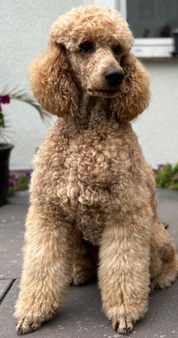 Scherbet ist nicht nur ein hübscher, sondern auch ausgesprochen netter und freundlicher Rüde. Er lebt mit seiner Familie in der nähe von Ückermünde im Stettiner Haf. Er ist ausgeglichen und managt sein Rudel von drei Hündinnen sehr souverän, ohne erkennbare Aggressionen mit einem einzigen Blick. Scherbet ist sehr anhänglich, durchaus verschmust und Menschen gegenüber sehr aufgeschlossen und zugewandt. Drinnen ist er pudeltypisch ruhig, draußen lässt er seinem fröhlichen Temperament gerne freien Lauf und hat einen beherrschbaren Jagdtrieb. In seiner Freizeit beschäftigt er sich gerne mit Dummy-Arbeit.
